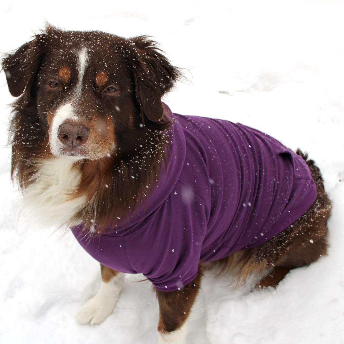 Your pup will love the comfort and style of this Doggie Design wardrobe essential. With the flexible fabric and ribbed trim, even hard-to-fit dogs will love the style of this pullover hoodie. We have used human-grade high-quality thicker material (290  GSM - gram per square meter) not usually seen in pet garments. This makes our dog hoodies a cozy choice for colder climates with the thick, plush material. The leash access hole at the base of the hood makes walks a breeze for dogs that prefer their hoods worn up or for pups that use a harness.