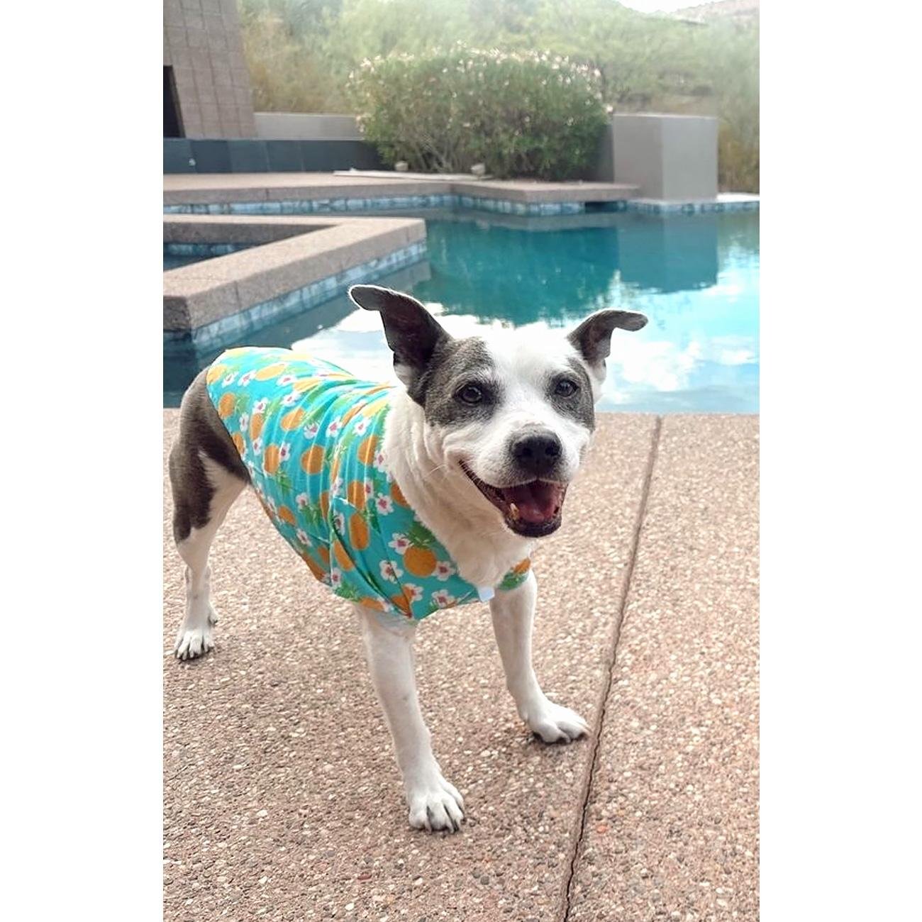 Our 100% Cotton Hawaiian Camp Shirts come in fun brilliant prints and feature a leash hole for simple and easy walking. Make sure to check out our matching designs in many of our other popular products! Aloha!